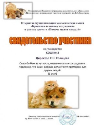 Волонтеры СОШ 3 запустили акцию "День добра".Они собрали и передали корм в помощь бездомным животным в группу "4 с хвостиком"
